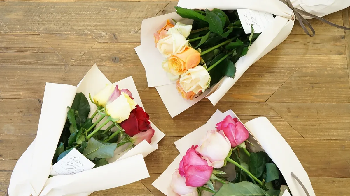 ホシファーム 届いた姿でそのまま飾れるスタンディング薔薇ブーケ ピュア8本
