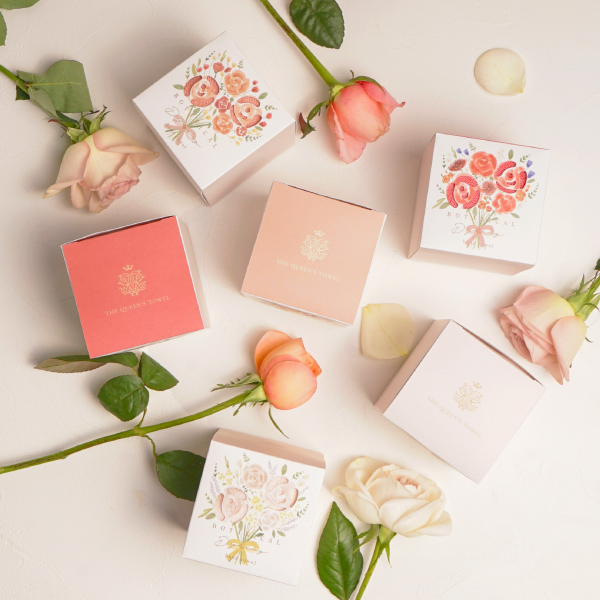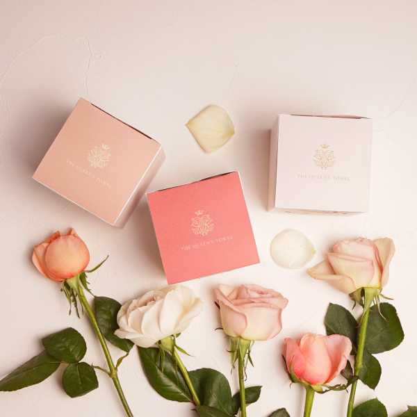 『THE QUEEN'S TOWEL』は、素材から色・パッケージまで一切妥協なくこだわり抜き、「上質」と「心地よさ」を追求した大人のためのプレミアムタオル。「日々使うハンドタオルだからこそ、触れたときの幸福感や、美しいカラーを楽しめるようなタオルを作りたい」そんな想いから生まれたギフトアイテムです。キューブ型が特徴のパッケージにはブーケのデザインをあしらい、繊細なカットから覗くハンドタオルとの調和が美しく仕上がっています。まるでお花を貰ったような気持ちにしてくれる、優しさと華やかさが伝わるデザインにこだわりました。