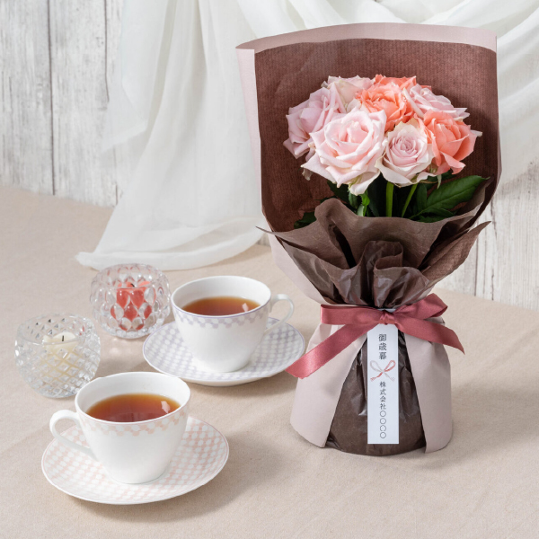 | バラ(アバランチェ)×8本、カード熨斗(文字数により承りできない場合がございます。)、スタンディングブーケのしおり付き |