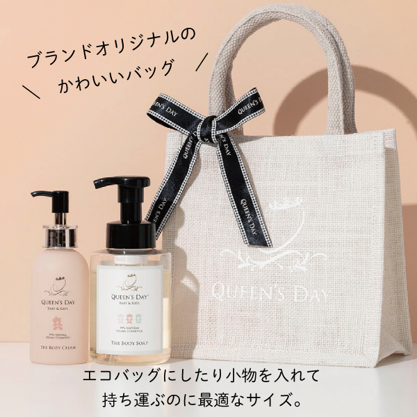 現役ママ達の声から生まれた、国産ヴィーガンのベビースキンケア「QUEEN'S DAY」「赤ちゃんにも心地よい肌触り」をコンセプトに人と環境に優しさを追求しています。