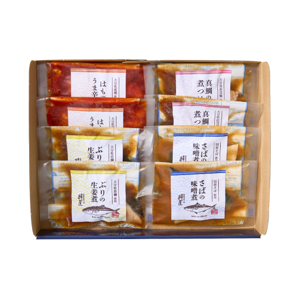 | ぶり生姜煮・真鯛煮つけ・さば味噌煮・はも旨辛煮 各70g×2切(計8切) |