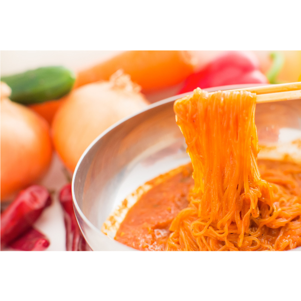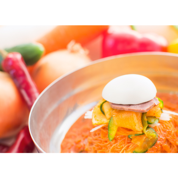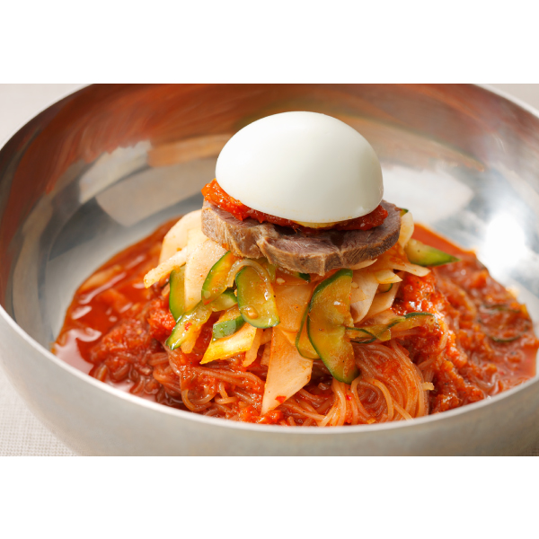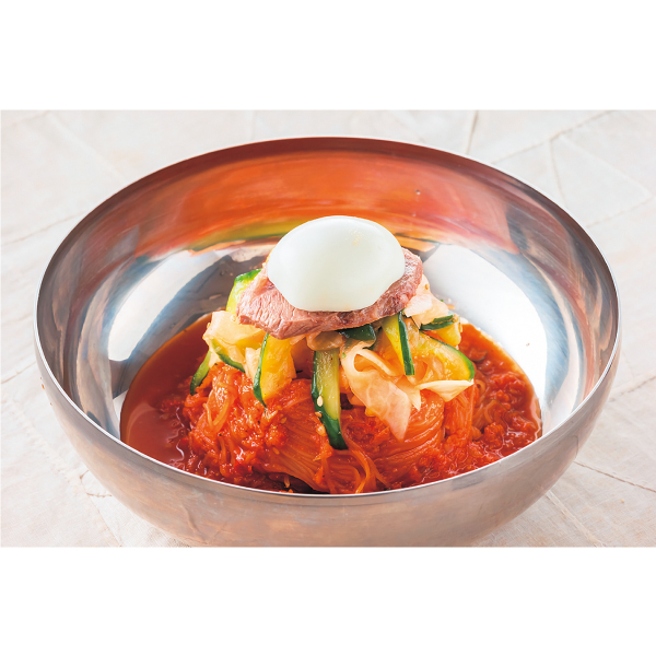 唐辛子の辛味と野菜の自然な甘みが活きた、熟成発酵し続ける奥深い辛みの特製べジソースが、つるりとした食感の極細本格生麺に良く絡み相性が抜群。お店の味をそのままお召しあがりいただきたいという想いから、麺とソース、さらにはトッピングまで詰合せた人気店の本格ピビン冷麺をお楽しみください。