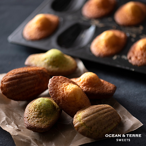 【ぷっくりマドレーヌ】芳醇なレモンの香りが決めてのプレーンと、ナッツの女王ピスタチオを使用した贅沢な2種類のマドレーヌ。ぷっくりと焼き膨らんだ形がポイント。