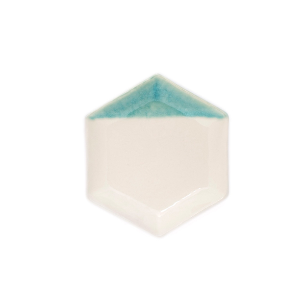 縁起の良いモチーフとされている六角形の取皿。瀬戸焼の伝統的な技法「かけわけ」を用いて作られた「黄彩」「青磁」の2色セットです。
