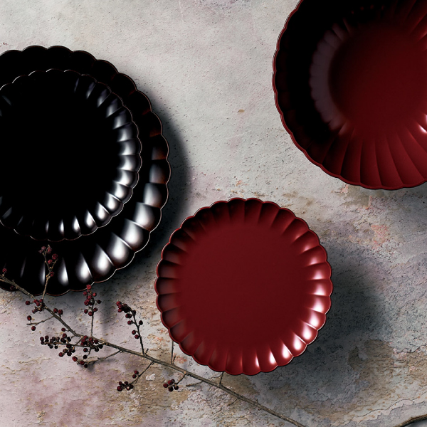 - 3piece> 食器・キッチン用品・調理器 > 皿・プレート > 山中塗 フラワープレート 大小 ペア(古代朱)