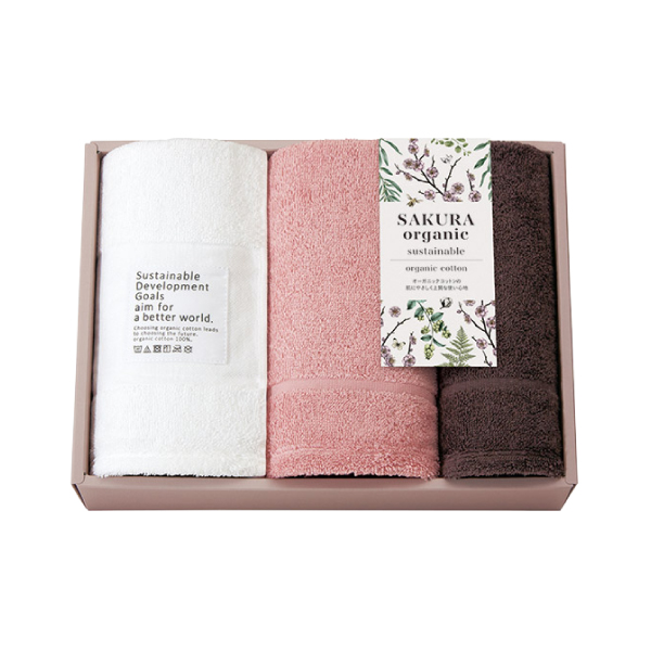 - 3piece> タオル・寝具 > ハンドタオル・ウォッシュタオル > サクラオーガニック -sustainable- オーガニックコットンタオルセットC