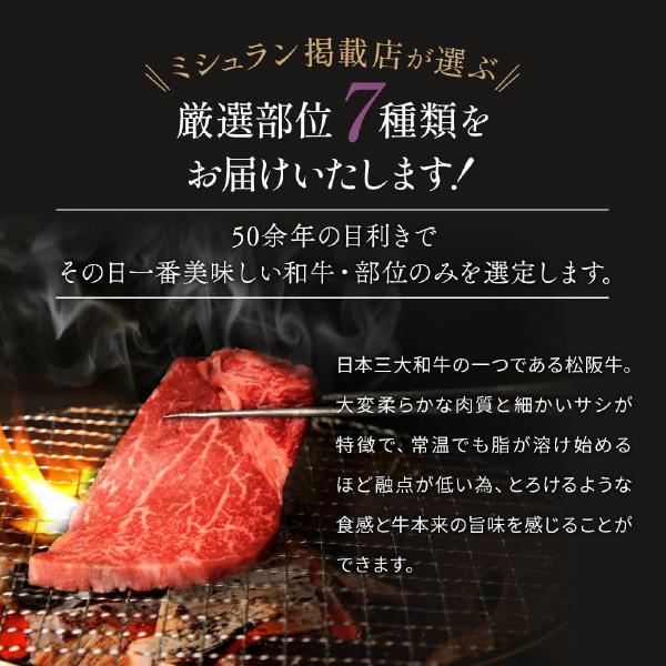 - 3piece> グルメ・食品・調味料 > 肉・加工肉 > 雪月花 松阪牛 厳選部位7点焼肉セット