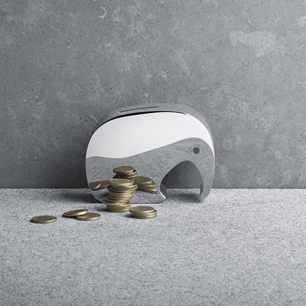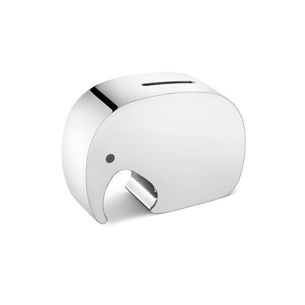 象の可愛らしさはそのままに、子供も大人も使いやすいデザインの貯金箱です。クリーンなラインによって一瞬で目を奪われます。