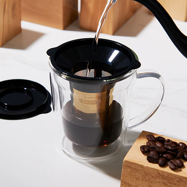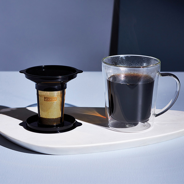 コーヒー粉や茶葉を入れてお湯を注ぎ待つだけで、手軽に1杯分が淹れられます。マグはダブルウォールでホットは冷めにくく、アイスはぬるくなりにくい。コーヒーだけではなく、紅茶、緑茶、中国茶、ハーブティーなども淹れられます。匂いや汚れが付きにくい為、コーヒー、紅茶などを兼用しても味わいに影響を与えにくく、衛生的。