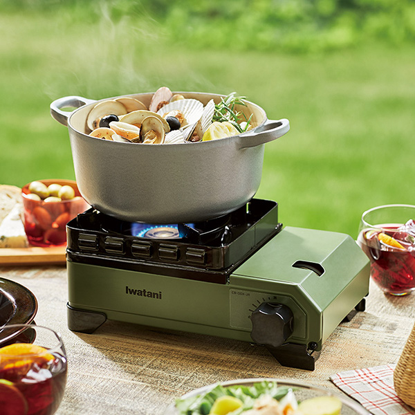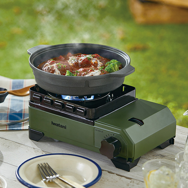風を気にせず使えるタフなコンロです。風のある場所で空気は通しても風は通さない当社独自の「ダブル風防ユニット」搭載で、野外でも強い加熱性能が得られます。耐荷重10kg。重くて調理できなかったダッチオーブンが使えます。