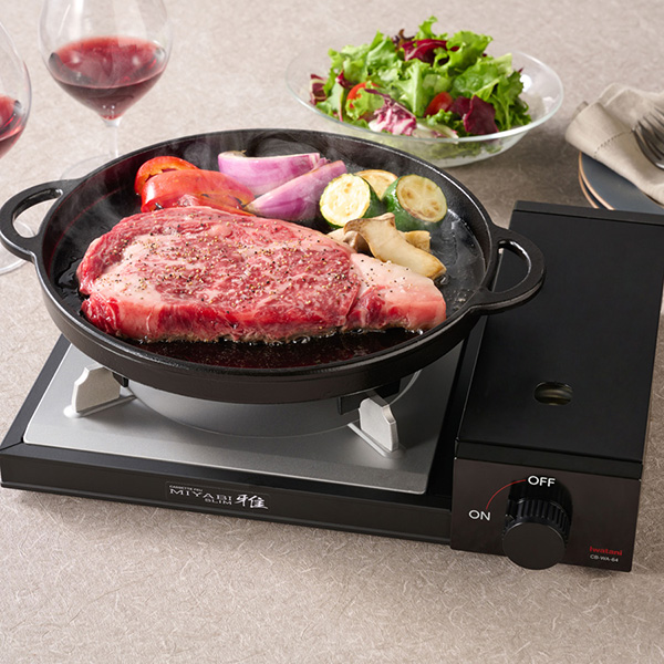 お鍋の具材が見やすく取りやすいイワタニカセットフーシリーズの中で最も薄型のこんろです。火力を安定させるヒートパネル搭載。適度にボンベを温めることで、気化熱によるボンベの温度低下を防ぎ、火力を落とさずガスを無駄なく消費するヒートパネル方式を採用。ご自宅の食卓はもちろんお洒落なシーンで「洗練された和の空間」を創造し、食卓を贅沢に演出します。
