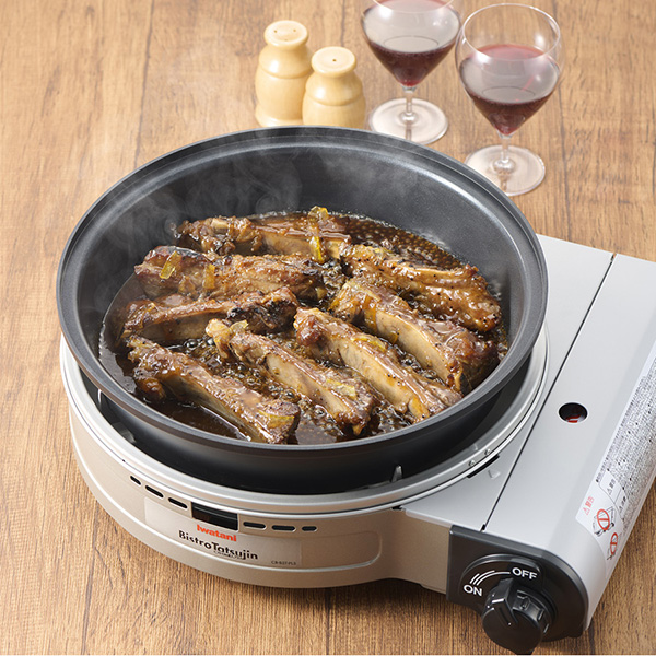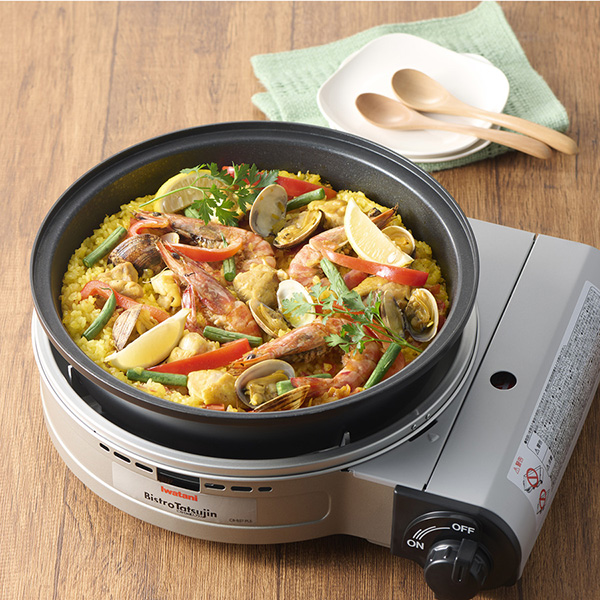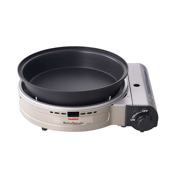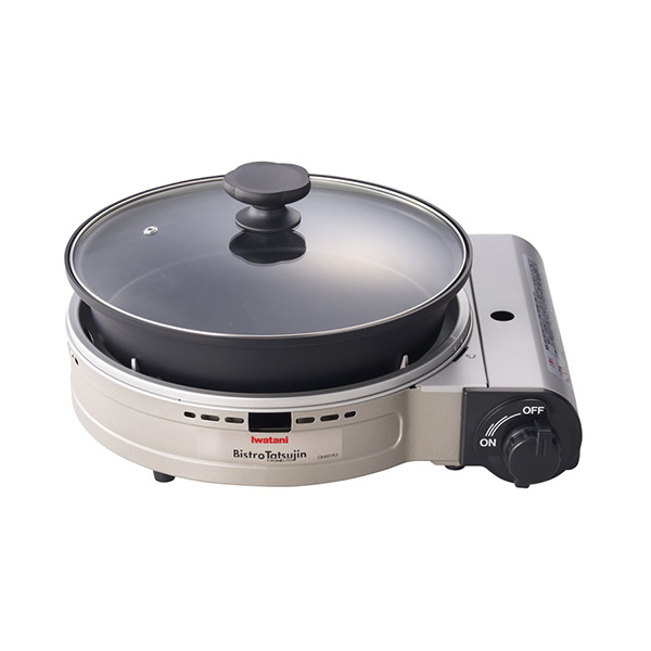 カセットガスを燃料とする、マルチに使えるグリルパンです。ホットプレート、グリル鍋の調理がこれ1台ででき、プレートを外せばカセットコンロとしても使えます。「焼く」「煮る」「蒸す」「炊く」「鍋もの」「無水調理」など、これ1台で多彩なメニューが楽しめます。ガラス蓋付き。