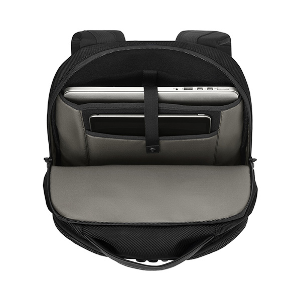 ビクトリノックスのバックパックは、シンプルな見た目ながら、高い収納力を備えています。取り外し可能な小物収納オーガナイザーを付属し、多様なポケットも備え、小物類の整理もしやすくなっています。PC収納部にはパッド入りPCポケットとタブレットポケットを備え、安全に電子機器を持ち運ぶことができます。ビジネスシーンにもカジュアルシーンにも活躍するバックパックです。