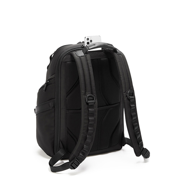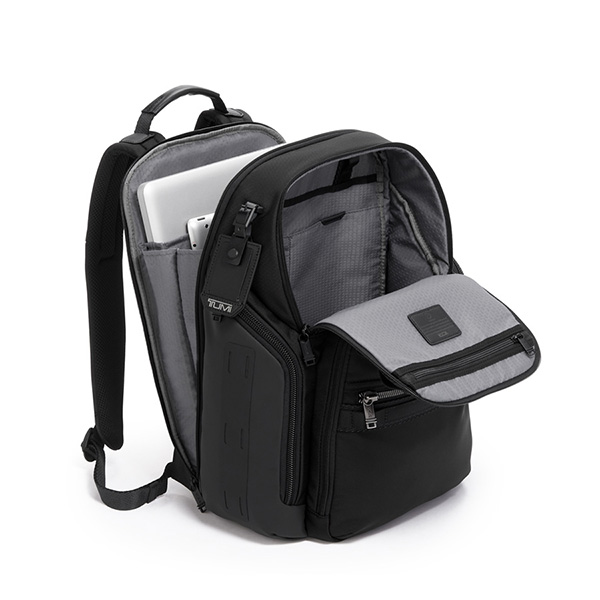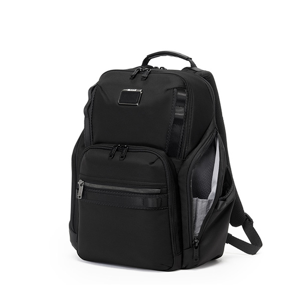 オーガナイザーポケットを多数備えデジタル端末から筆記具まで小物を仕分けして収納できる機能性の高いバックパック。背面のマグネット付きオープンポケットは、携帯電話など、すぐに取り出したい小物の収納に便利。ラップトップとタブレット用の収納スペースを搭載。メインのコンパートメントにはファスナーで簡単にアクセス可能。傘やタオル、ペットボトルの収納用に撥水加工が施されたポケットを搭載。ラゲージへのセットアップができるアド・ア・バッグ・スリーブを装備。トップにレザーのグリップのついたキャリーハンドルを備えています。別売りのTUMI+(トゥミプラス)アクセサリーと組み合わせることでニーズに合わせて収納量を拡張することが出来ます。