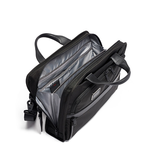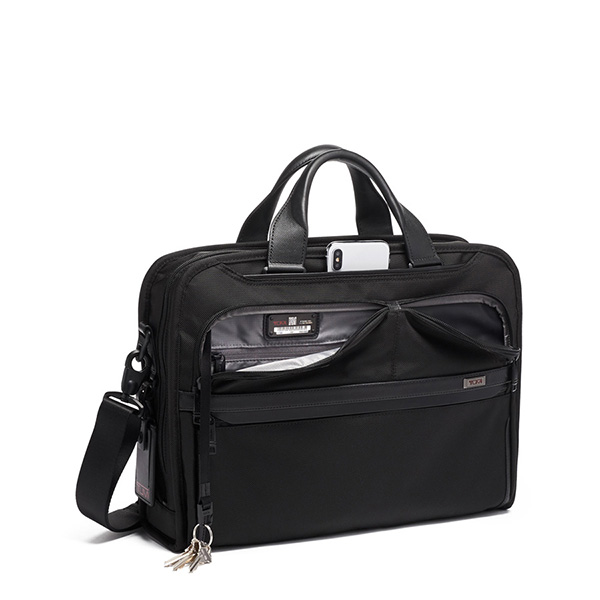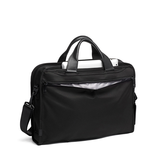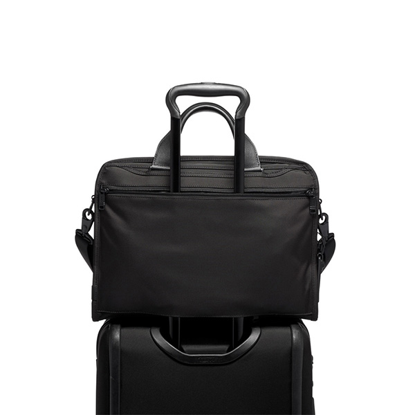 毎日の通勤に理想的な、高い収納力を誇るスリムタイプのビジネスブリーフ。メインコンパートメントには、書類用のパーティションや保護パッド付きのタブレット用ポケットを装備。ビジネスアイテムが取り出しやすく、収納しやすい設計です。外装には、防水加工を施したポケットを含む、2つのフロントのU字型ポケットやチケットポケット、キャスター付きラゲージとセットアップするためのアド・ア・バッグ・スリーブを装備しています。