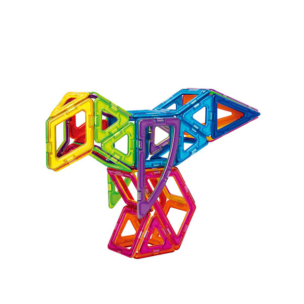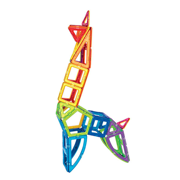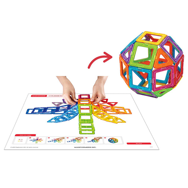 実寸のかたち合わせシートもあり、平面で形あわせや色あわせをして遊びながら、基本のかたち・色を目と手で確かめながら学びます。また原寸大の展開図では、見本通りにピースを並べて持ち上げると立体に大変身!自分の手で触って考えてくり返し遊ぶことで、小さなお子さまから平面から立体へ変化するマグ・フォーマーの醍醐味を簡単に体験でき、数学的思考や造形力を育みます。