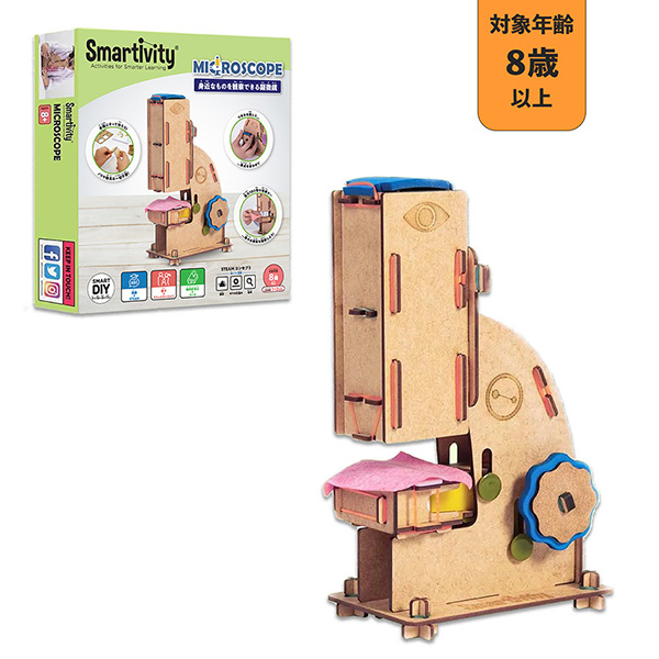 インド発!最大100倍まで拡大可能な「身近なものを観察できる顕微鏡」を組み立てて光の屈折やギアの仕組みについて学べるDIY式のSTEAM知育玩具となっています。