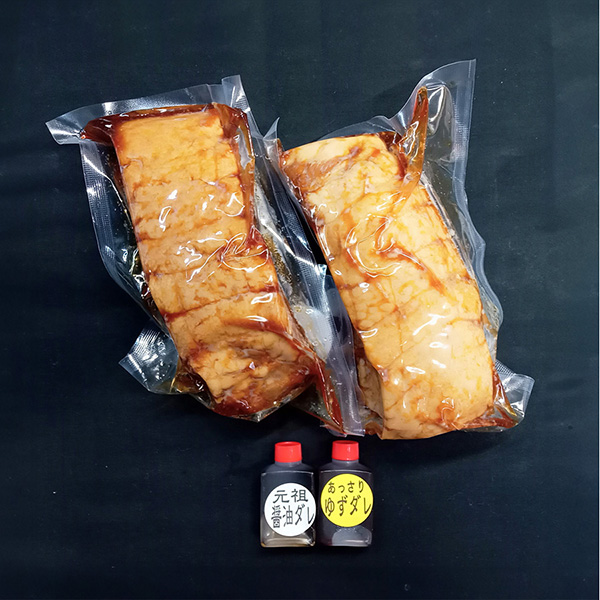 | オリーブ豚チャーシューバラ肉255g×2、元祖醤油ダレ15g、あっさりゆずダレ15g |