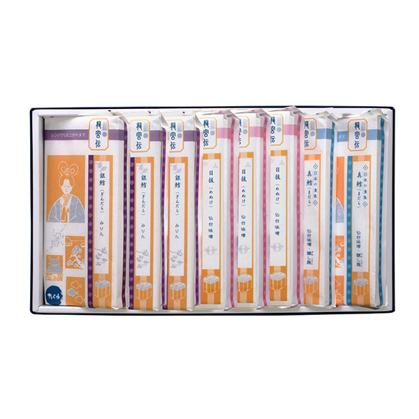 | 銀鱈みりん漬(80g)×3、目抜仙台味噌漬(80g)×3、真鱈仙台味噌醸し麹漬(80g)×2 |