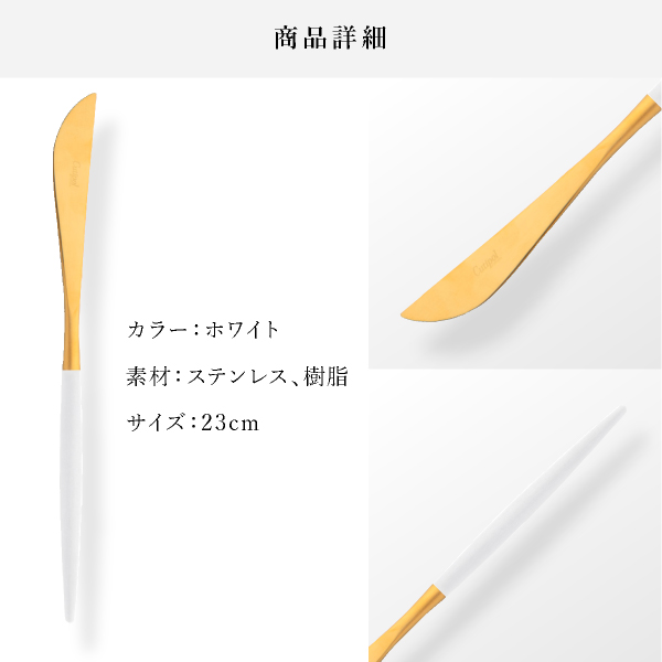 - 3piece> 食器・キッチン用品・調理器 > カトラリー > 【送料無料】メール便 クチポール GOAホワイト テーブルナイフ ゴールド