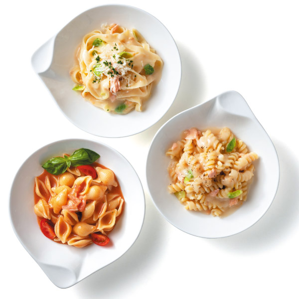 | 北海道産サケとキャベツクリームパスタソース17.2g×4、北海道産トマトとズワイガニクリームパスタソース16g×2、アビッシーネ・リガーテ70g×2、ロングパスタ タリアテッレ50g×2、フジッリ・ブロンズ70g×2 |
