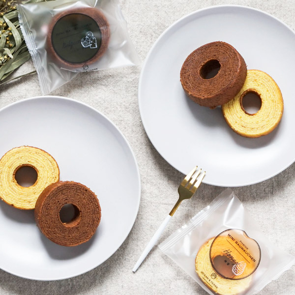 ハニーとチョコ、甘くて濃厚な味わいのバームクーヘンを詰め合わせました。袋を開けた瞬間甘い香りが漂い、贅沢なおやつタイムが楽しめます。シンプルなパッケージがおしゃれなスイーツギフトは、どなたに贈っても喜ばれる一品です。個包装のため、家族で分け合っても、ひとつずつゆっくり楽しんでも◎貰った方それぞれの楽しみ方でお召し上がりいただけます。はちみつ、アイシングなどデコアレンジで美味しくオシャレに楽しむのもおすすめです。
