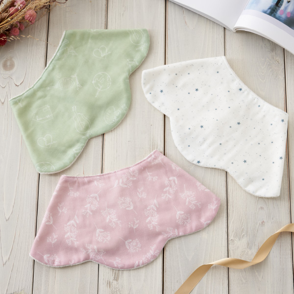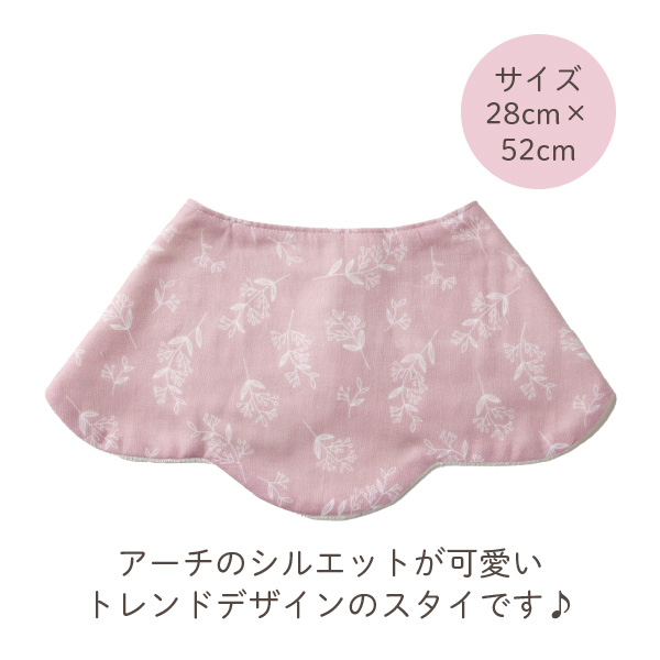 首周りをぐるっと一周したデザインのスタイは、活発に動くお子さまにおすすめ!どの面でもしっかりとよだれをキャッチしてくれます。厚めのしっかりとしたスタイは、肌触りもよくお子さまに優しい素材でできております。