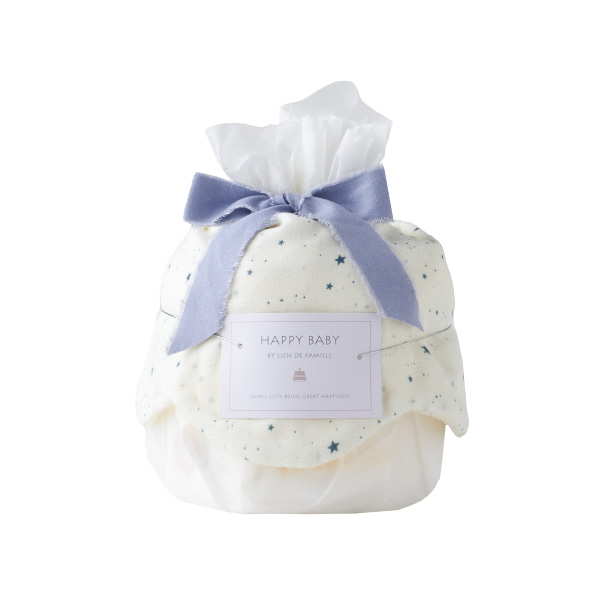 【Lien de famille】バーピースタイのベビーおむつケーキ(ブルーホワイト)