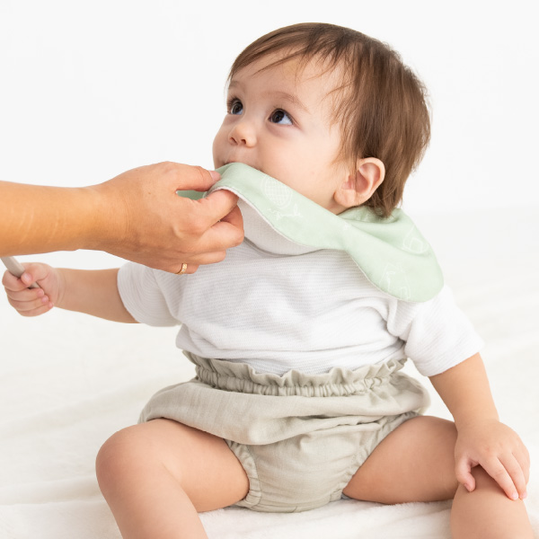 爽やかなピスタチオグリーンで、お子さまの顔もパッと華やかにしてくれます。シンプルなデザインなので、どんな洋服にも合わせやすく重宝すること間違いなし♪