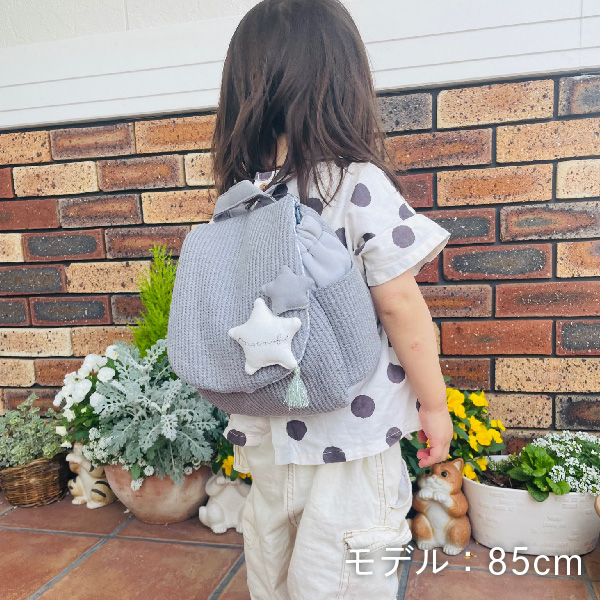 ころんとしたフォルムで、背負った後ろ姿はとってもキュート♪軽量で、肩紐も調整できるのでお子さまの負担にもなりにくく、長く使っていただけます。ぷっくりした星には音が鳴る仕掛けが!大好きなおもちゃや、おやつを入れてお出かけが楽しくなること間違いなし♪袋口もお子さま自身で取り出しやすい設計になっています。