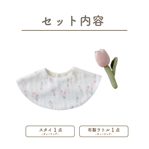 【Lien de famille】スタイとラトルのベビーギフト(チューリップ)