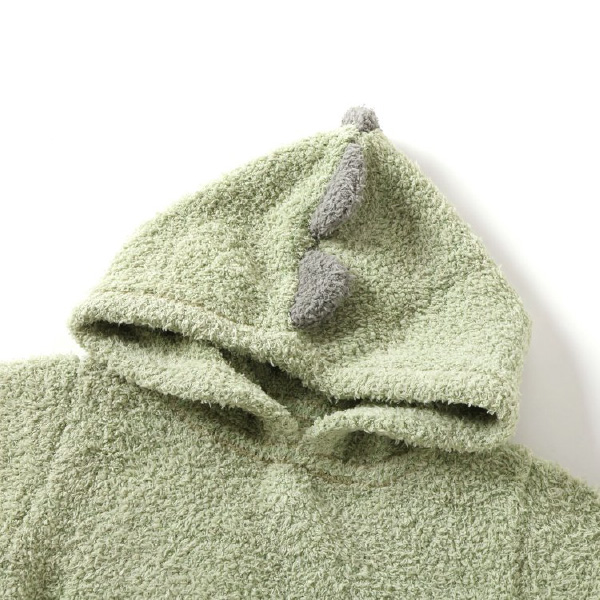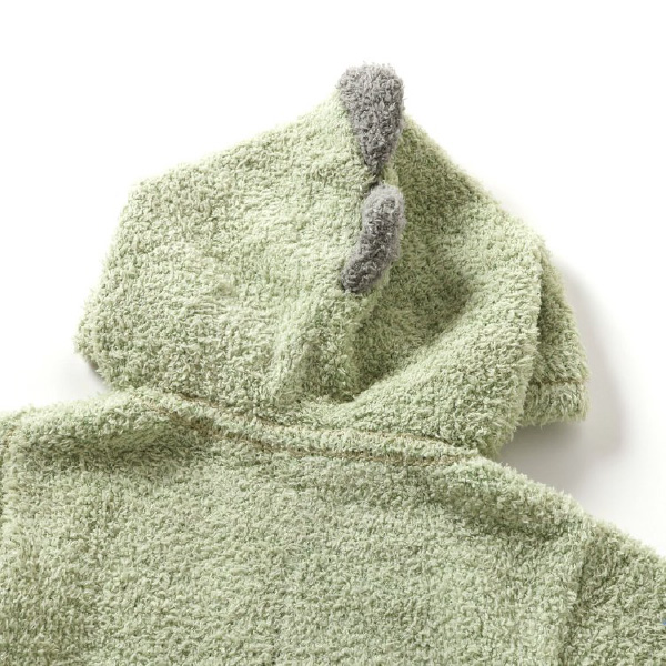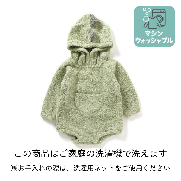 大人気の恐竜デザイン♪恐竜のトゲまで可愛く表現されています。恐竜好きな男の子への出産祝いにおすすめです。ふわふわの生地はチクチクしにくく赤ちゃんのお肌を優しく包み込んでくれます。冬のお出かけからルームウェアとしても大活躍!股にボタンが付いているのでおむつ替えも楽にでき、ママの負担も減らしてくれます。
