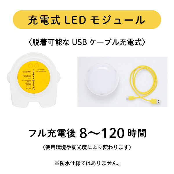 脱着可能なUSBケーブル充電式のLEDモジュールは6段階調光機能で間接照明やナイトライトとして十分な機能を備えています。