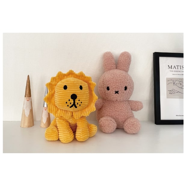 かわいいけれど、クールな印象も合わせ持ったミッフィーコーデュロイ。そんなミッフィーの親友のライオンが仲間入り♪おともだちや、お子さまと色違いで持つ楽しさも。それぞれ微妙に異なる表情でカタチが愛らしく、出産祝いや誕生日などのギフトにもおすすめです。
