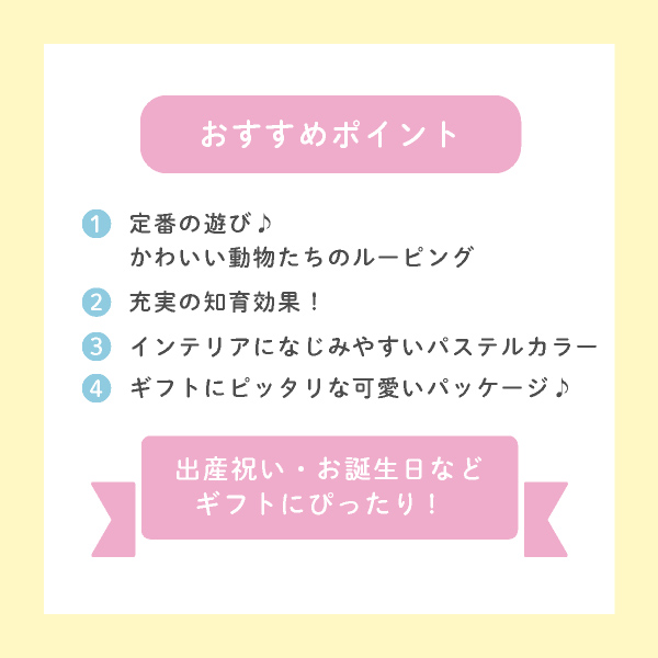 やさしい色あいのビーズと動物が楽しいルーピングです。