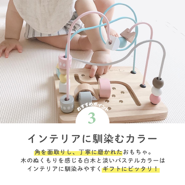 出産祝いにぴったり。ベビーカラーがかわいい木製玩具シリーズ