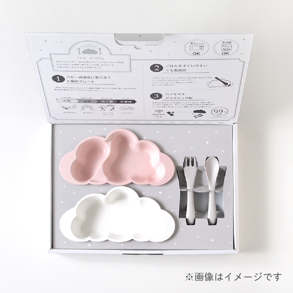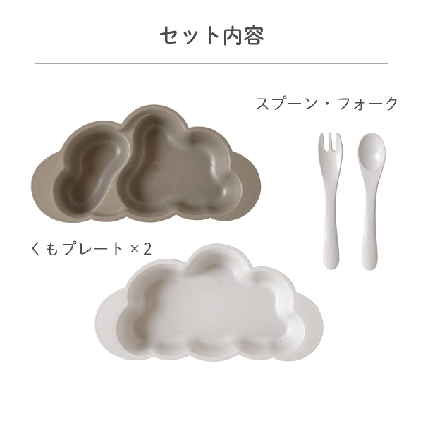 | くもプレート(仕切りなし)×1 くもプレート(仕切りあり)×1 フォーク×1 スプーン×1 |