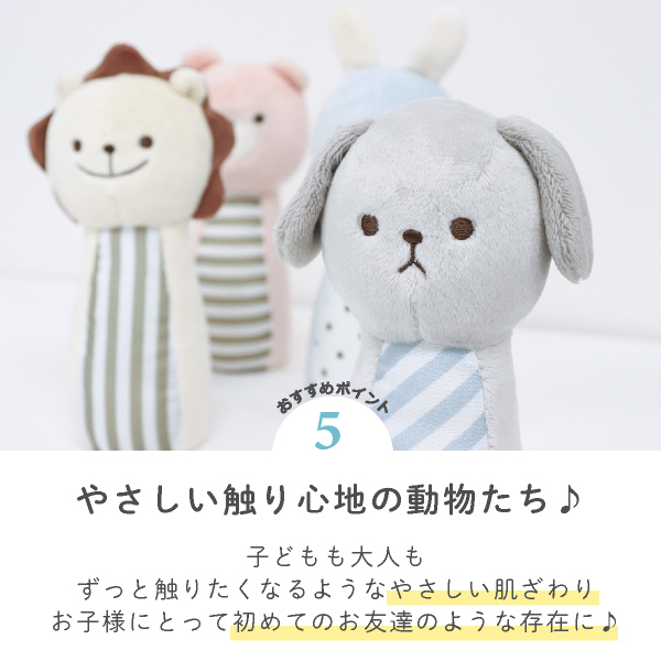お子さまに人気な動物たちは、名前を一緒に呼んであげてコミュニケーションをとるのにもぴったりです!