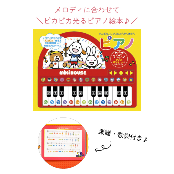 メロディに合わせてピカピカ光るとっても楽しいピアノ絵本♪
