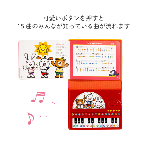 可愛いボタンを押すとみんなが知っている15種類の曲が流れます。