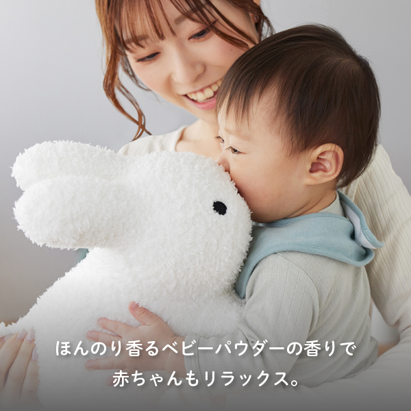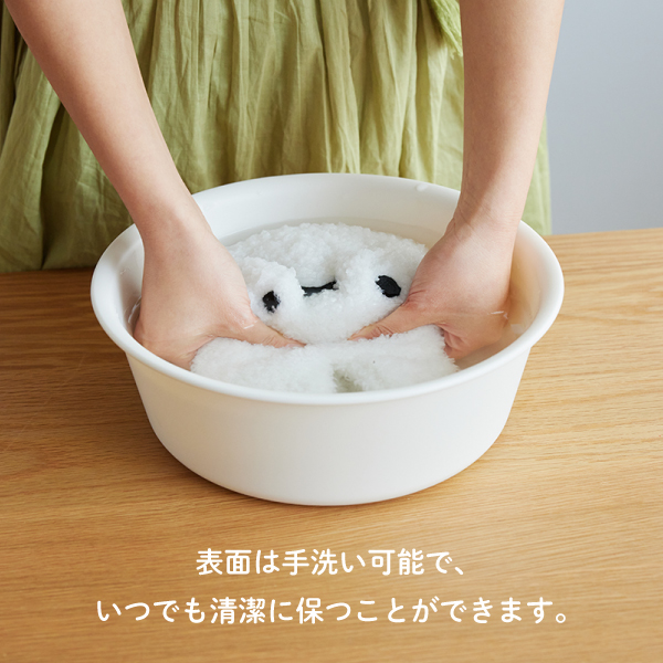 ほんのり香るベビーパウダーの香りがリラックスタイムにもぴったり。香りはバルーンに練り込まれているので、洗濯で消えることもありません。表面は手洗い可能で、いつでも清潔に保つことができます。