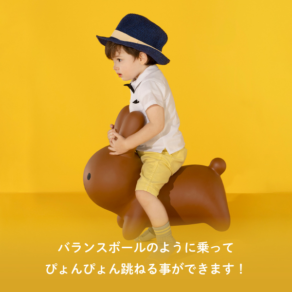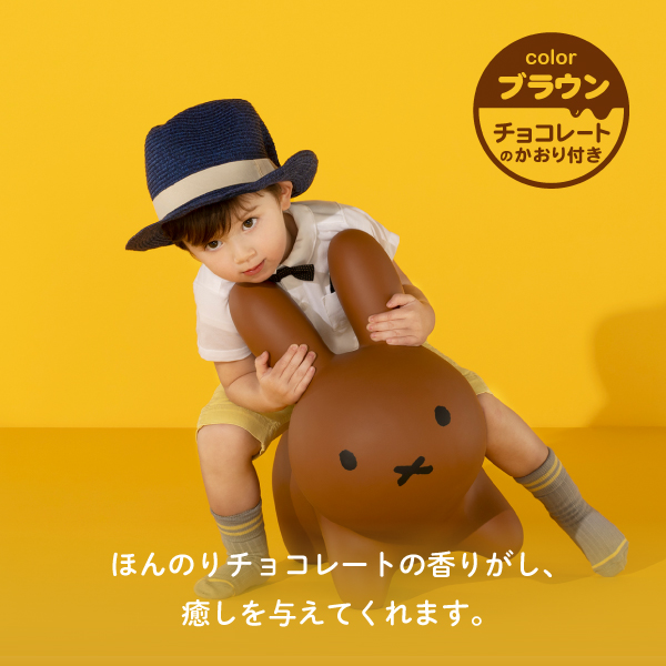 世界中で愛されているミッフィーが絵本から飛び出てきたような可愛いエクササイズバルーン器具が登場。柔らかい素材と、ころんとしたフォルムが愛くるしく大人もお子さまもギュッと抱きしめたくなります。落ち着いたブラウンカラーは、シックな部屋にもマッチし、汚れも目立たず長く愛用することができます。90kgまで対応しているので、お子さまだけでなく大人も一緒にぴょんぴょん遊ぶことができます。遊びながら簡単エクササイズ♪小さなお子さまには、つかまり立ちの練習アイテムとしても大活躍します。ほんのり香るチョコレートの匂いが癒しを与えてくれます。
