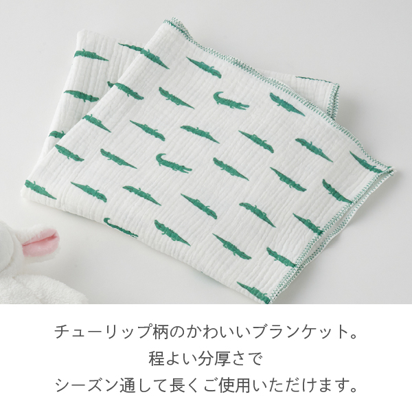 ユニークで可愛いワニ柄の綿100%ガーゼケットは、デリケートなお肌にも安心のやさしさ。