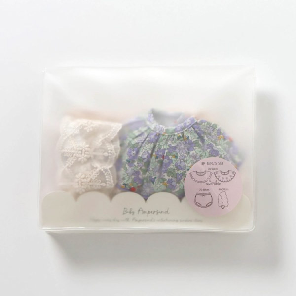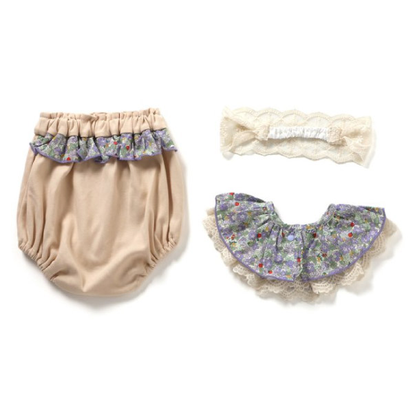 「かわいいね!」と思わず声が出ちゃう、花柄のスタイ・ブルマ・ヘアバンド3点セット。