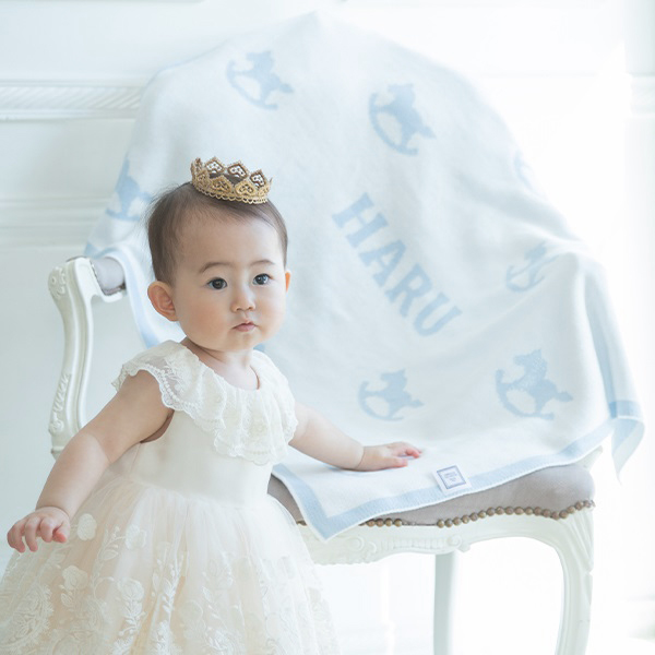 表と裏の色が反転するリバーシブル仕立ての素敵なベビーブランケットで、出産祝いなどのギフトにはもちろん、出産準備品としても人気のアイテムとなっています。