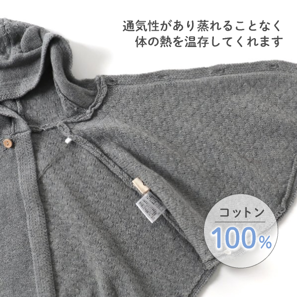 また、綿100%の素材は、通気性もよく、蒸れることなく体の熱を温存してくれるので、一年中使えるアイテムは、出産祝いなど贈り物にも大変喜ばれます。