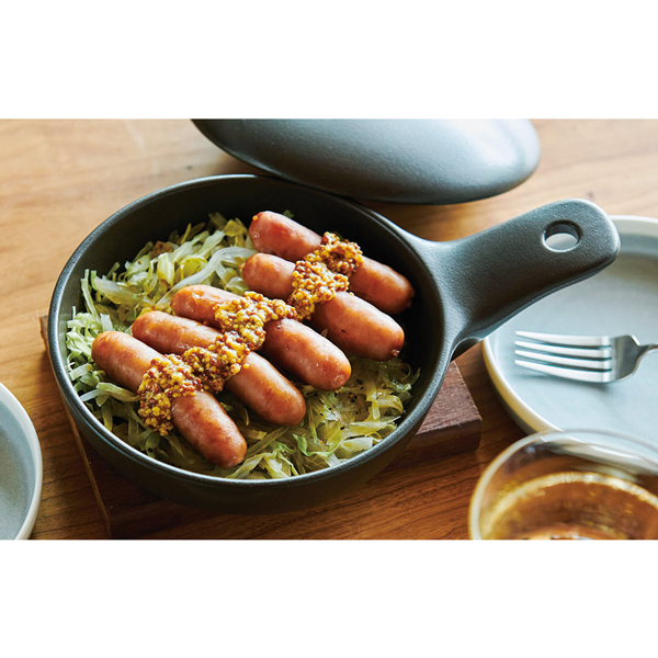 コンパクトサイズの耐熱片手グリルパン。蓋付だから蒸し焼き調理もできます。魚焼きグリルやトースターにも入るので、料理のレパートリーが広がります。そのまま器としても使えるので、熱々のまま食卓に並べることも。レシピ付。