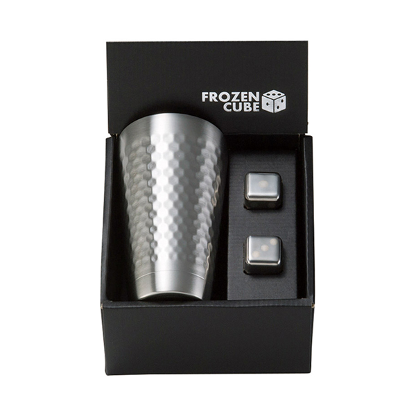 二重構造のステンレスタンブラーと、氷の代用品として使えるステンレス製キューブのセットです。ステンレスキューブは冷凍庫で冷やして使用することで、通常の氷のように溶けて飲み物が薄まることがありません。何度も繰り返しご使用ができるのも嬉しいポイントです。