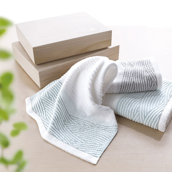 愛媛県今治産「瀬戸内逸品」のバスタオルとフェイスタオルのセット。瀬戸内海をイメージした上品なデザインを木箱に収め、贈る方に高級感と心地よい肌触りを届けます。日常使いにも特別なギフトとしても喜ばれる一品です。