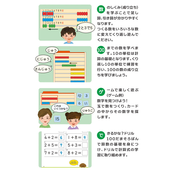 100までの数を玉で動かして学べるそろばんセット。数の概念や比較、簡単な計算の練習に最適で、遊びながら算数の基礎力を身につけられます。おけいこシートやカード付きで、知育教育ギフトとして誕生日や入学祝いにも喜ばれるアイテムです。